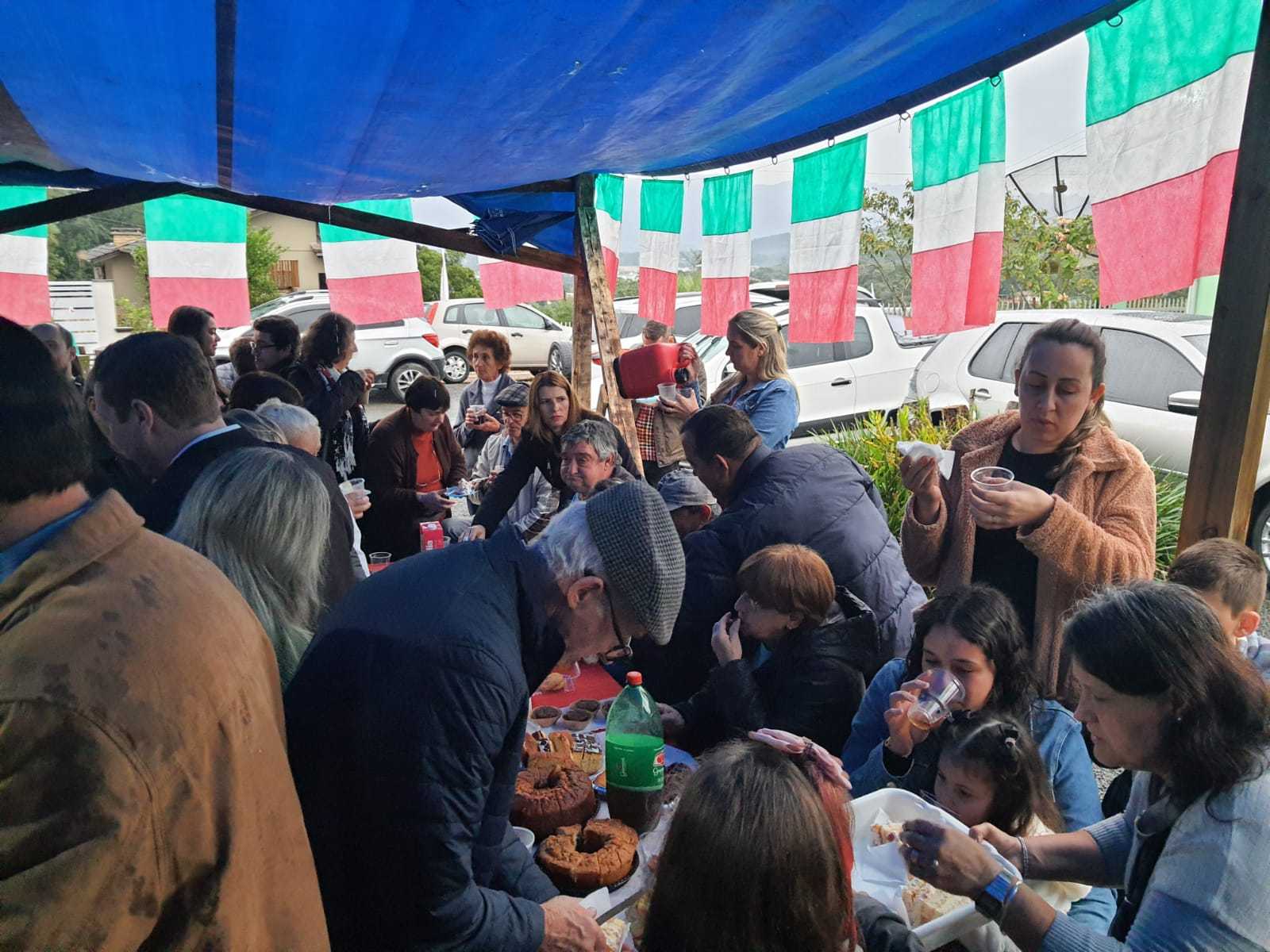Domingo, dia 29 de maio, foi especial para a família de seu Bruno Da Boit. Seu desejo de realizar em sua casa uma edição do Café Bergamasco teve que esperar dois anos de pandemia. E a data chegou. Mais de 150 pessoas estiveram presentes na residência da família Da Boit para mais uma edição do tradicional encontro que tem o objetivo de resgatar os costumes, crenças e tradições dos nossos antepassados. Muita cantoria, vinho e comida, uma marca dos encontros das famílias de descendência italiana.