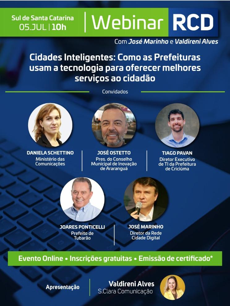 Com o objetivo de analisar como as prefeituras usam o desenvolvimento tecnológico para oferecer os melhores serviços aos cidadãos nos municípios, a Diretoria de Tecnologia de Informação (TI) de Criciúma participará do evento Webinar das Cidades Digitais, organizado pela Rede Cidade Digital. O evento será em formato online e ocorrerá nesta terça-feira (05) às 10h, reunindo representantes de tecnologia das prefeituras e do Ministério de Ciência e Tecnologia da região Sul de Santa Catarina.